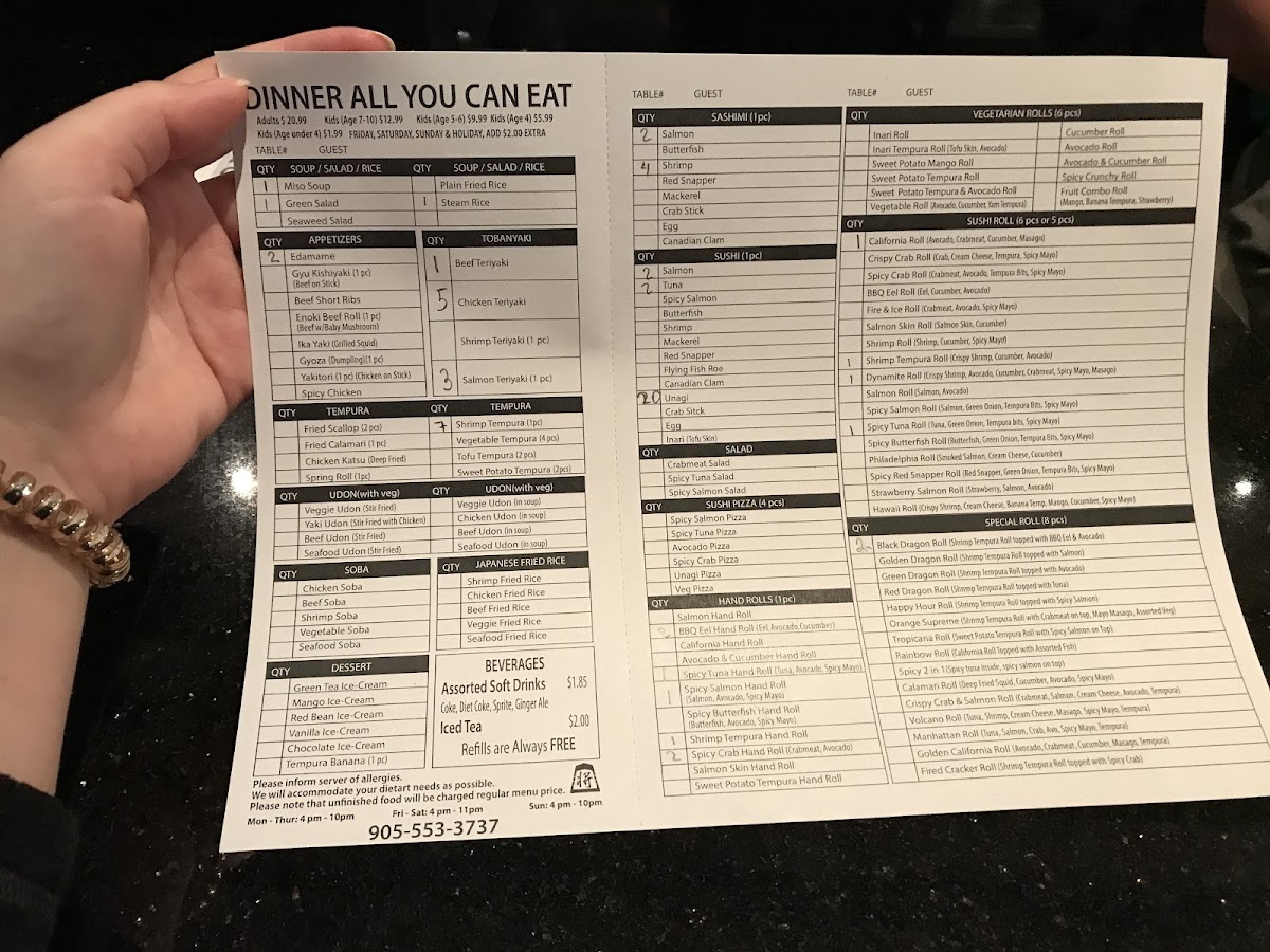 90 pieces. 11 your choice of regular or popular sushi roll, and 3 your choice of house special sushi rolls.